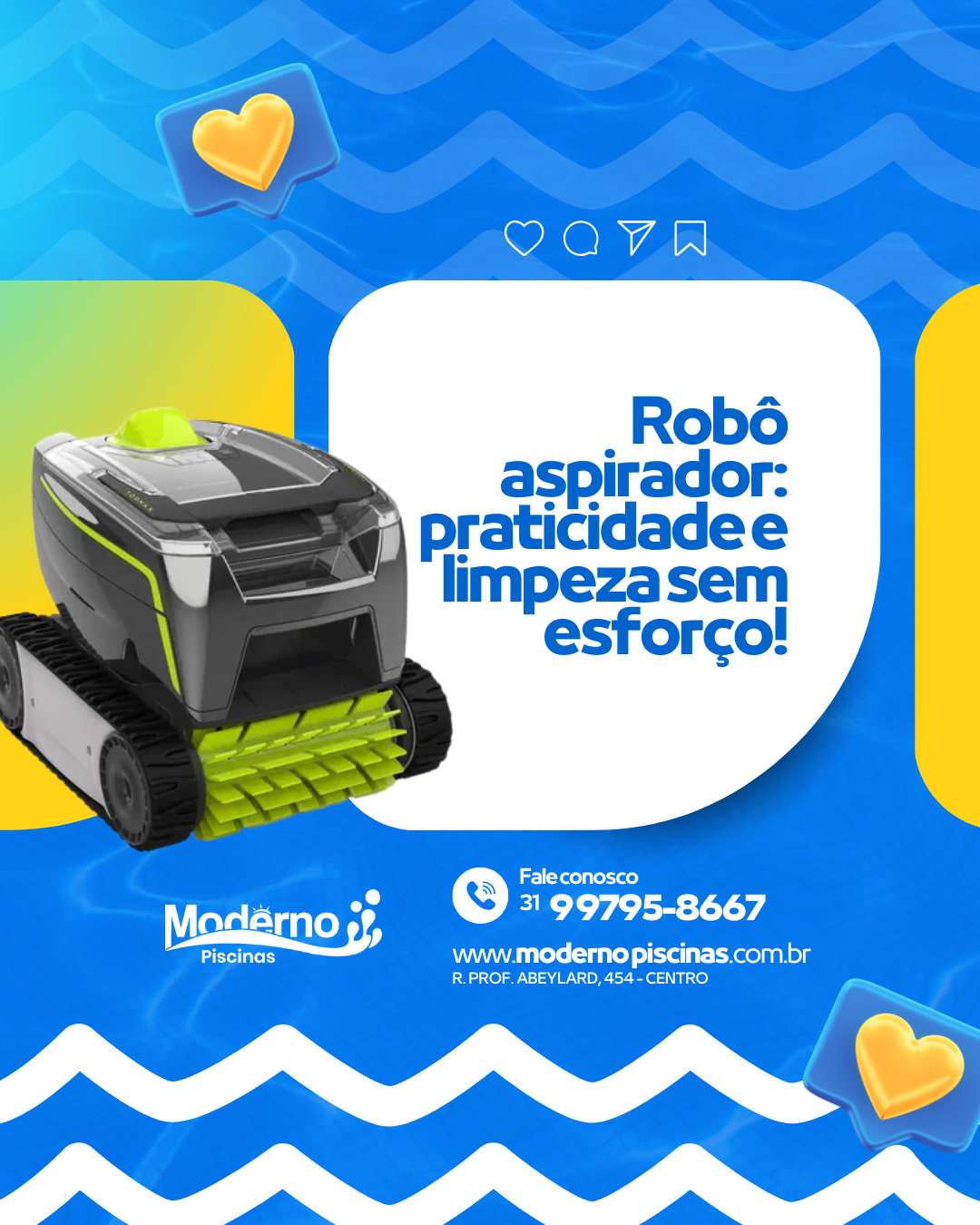 Chega de perder tempo e energia limpando a piscina manualmente. O Robô Aspirador faz todo o trabalho pesado pra você, removendo sujeiras do fundo, paredes e superfície com eficiência.